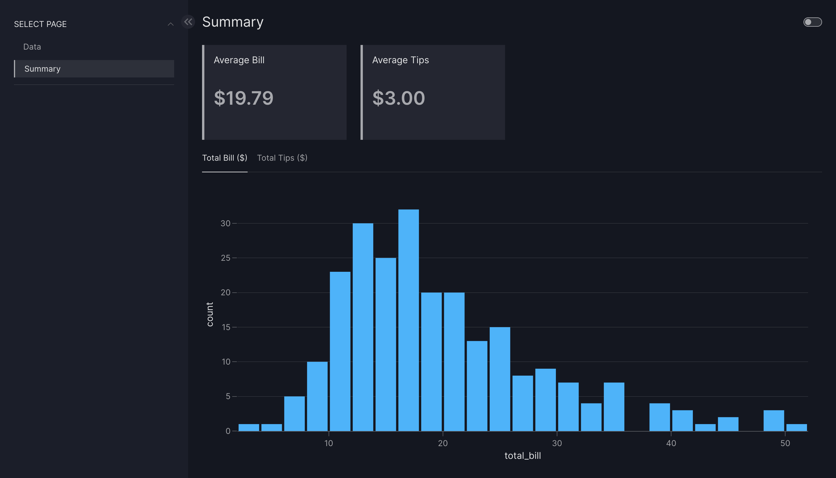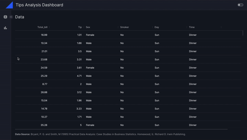 titleattribute of the Dashboard[vizro.models.Dashboard] model to "Tips Analysis Dashboard". - Download the