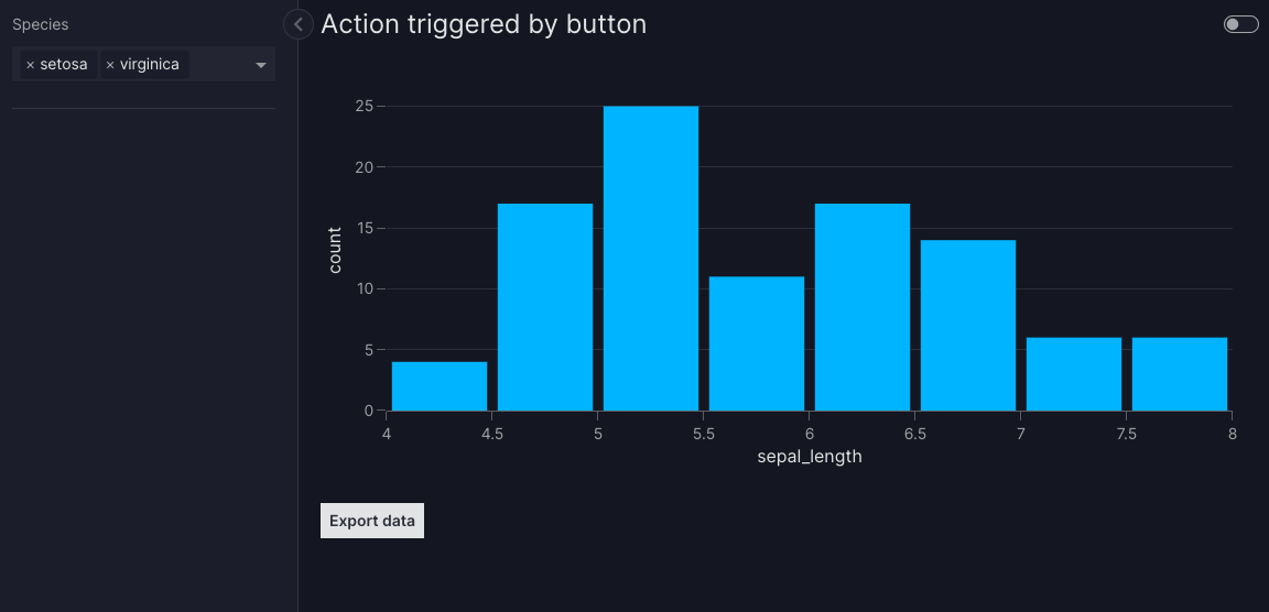 Many [Vizro models][vizro.models] have an actions argument that can contain one or more actions. Each action is a Python function that is triggered by a user interaction.