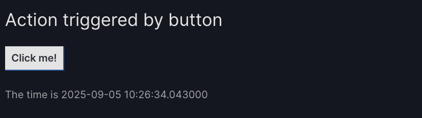 Here is an example action that gives the current time when a button is clicked.