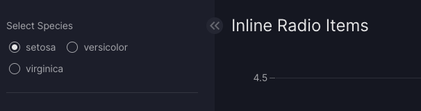 An example would be to make the [RadioItem][vizro.models.RadioItems] display inline instead of stacked vertically. For this you can use extra={"inline": True} argument: