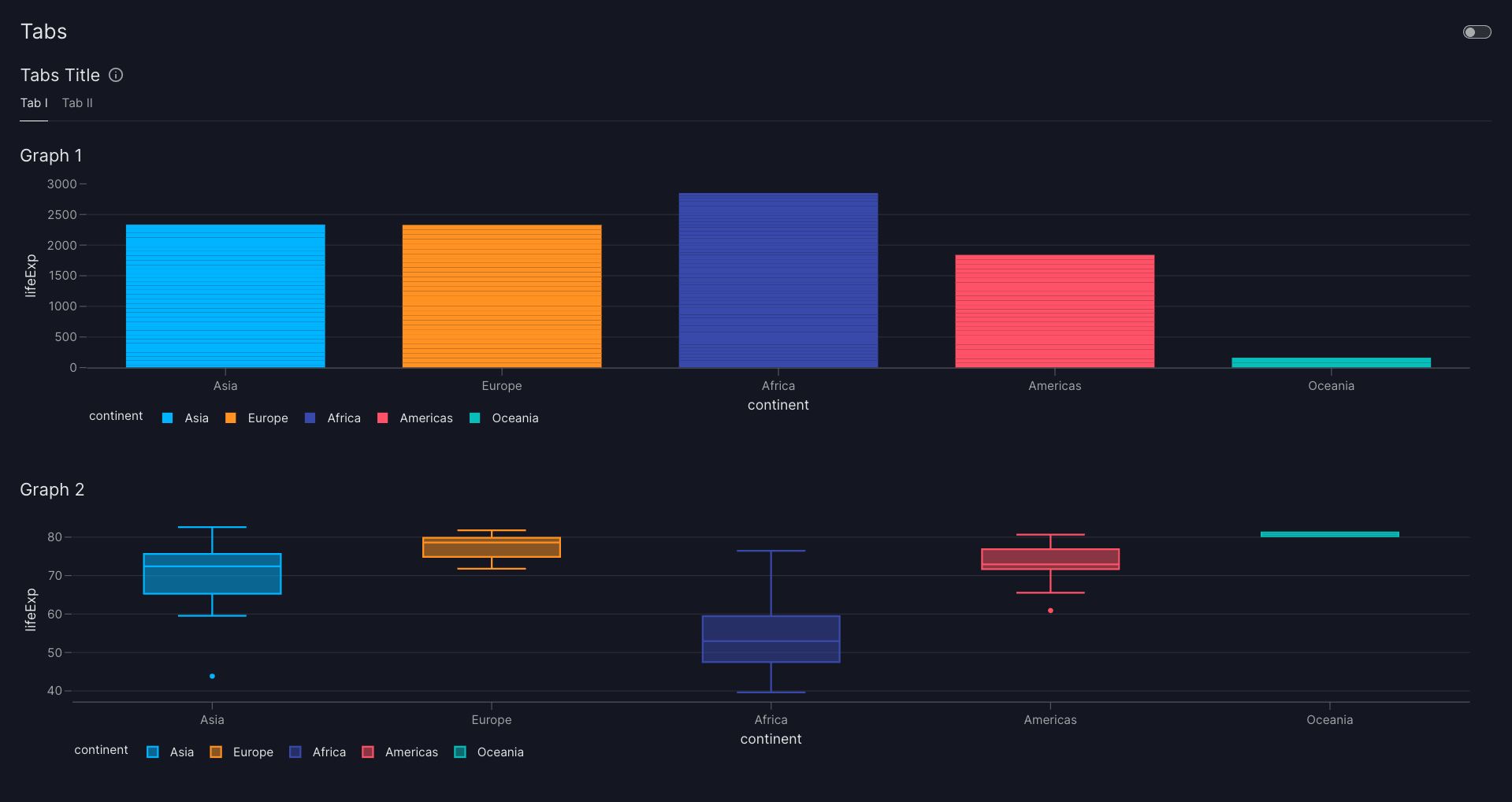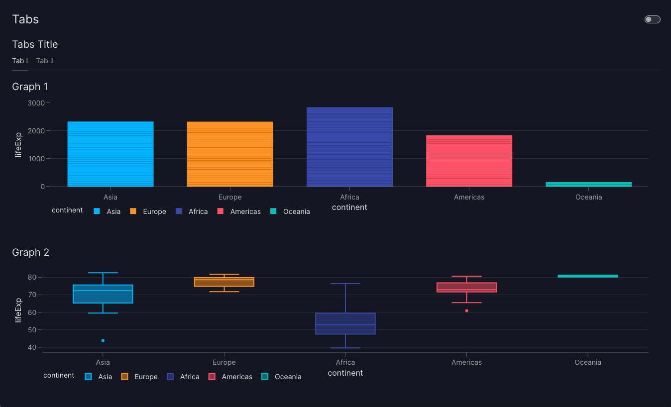titleof the [Container][vizro.models.Container] inserted intoTabs.tabswill be displayed as a tab label, and the title will be removed from theContainer