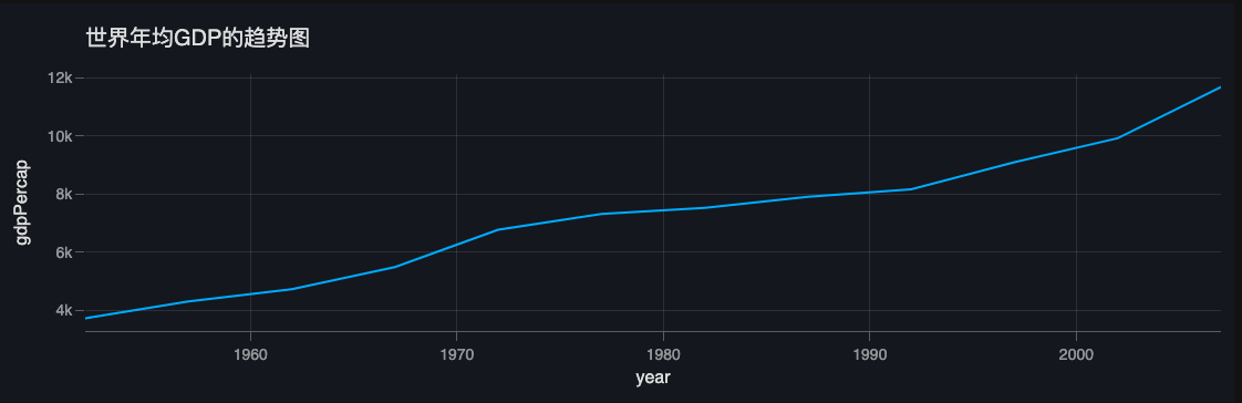 Vizro-AI is versatile, supporting prompts and chart visualizations in languages other than English. In this guide you will explore this capability with two examples, starting with Chinese where we inquire about visualizing the GDP per capita over time.